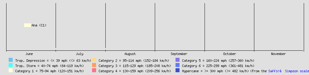 Dates active | Storm category at peak intensity |